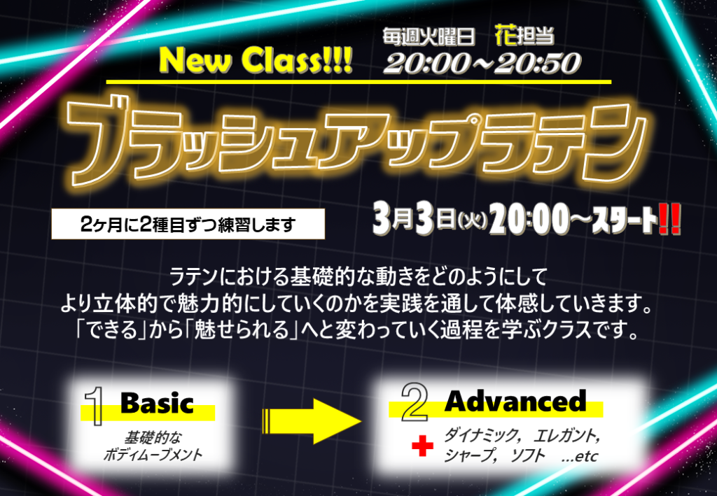 ラテンにおける基礎の基礎をしっかりと学びたい!無理なく自然に踊れるようになりたい!といった方にもおすすめです。